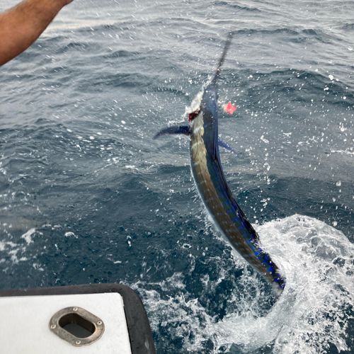 Atlantic sailfish are the acrobats of the ocean, known for their stunning aerial displays. These beautiful fish have a distinctive sail-like dorsal fin and can reach 7-8 feet long. You'll find them in warm offshore waters, often in the top 100 feet. Anglers chase sails for the thrill of the fight and their incredible jumps. They're catch-and-release only, so it's all about the experience. Best fishing is winter through spring, but you can find them year-round. To target sailfish, slow-troll live baits like goggle eyes or kite fish with light tackle. When a sail lights up on your bait, it's a sight you won't forget. Here's a local tip: when you hook up, keep your rod tip high and maintain steady pressure. Sailfish often jump to throw the hook, so a tight line is key to landing these magnificent fish.