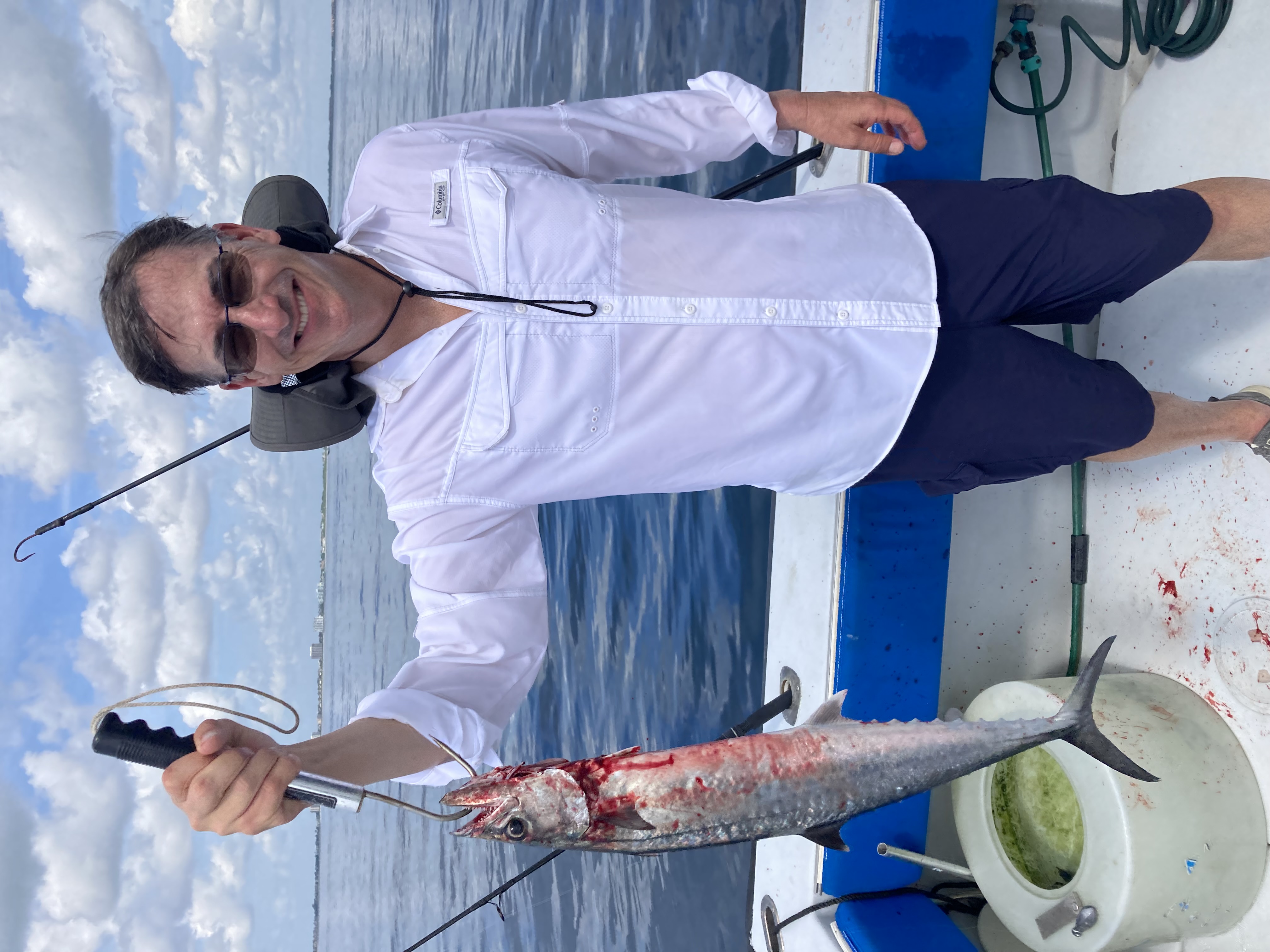 I love trips with Kids ! Today Rich joined us with 11 year old Luke and 12 year old Jay and we had fun ! We started out by trolling up half a dozen Bonita, catch and release action. Once the boys had that under control we switched over to drift fishing. Four knots of current made it challenging for them, but they caught porgies, grunts, triggerfish, and a King Mackerel. We steamed home, tonight they get to eat thee fruits of their labor!